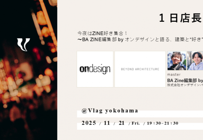 Vlag yokoha…Vlag yokohama1日店長Bar〜BA_ZINE編集部と語る、建築と“好き”を…