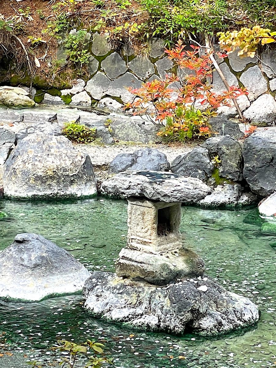 昔は「鬼の泉水」と呼ばれ、温泉が吹き出し、湯川の源流に。