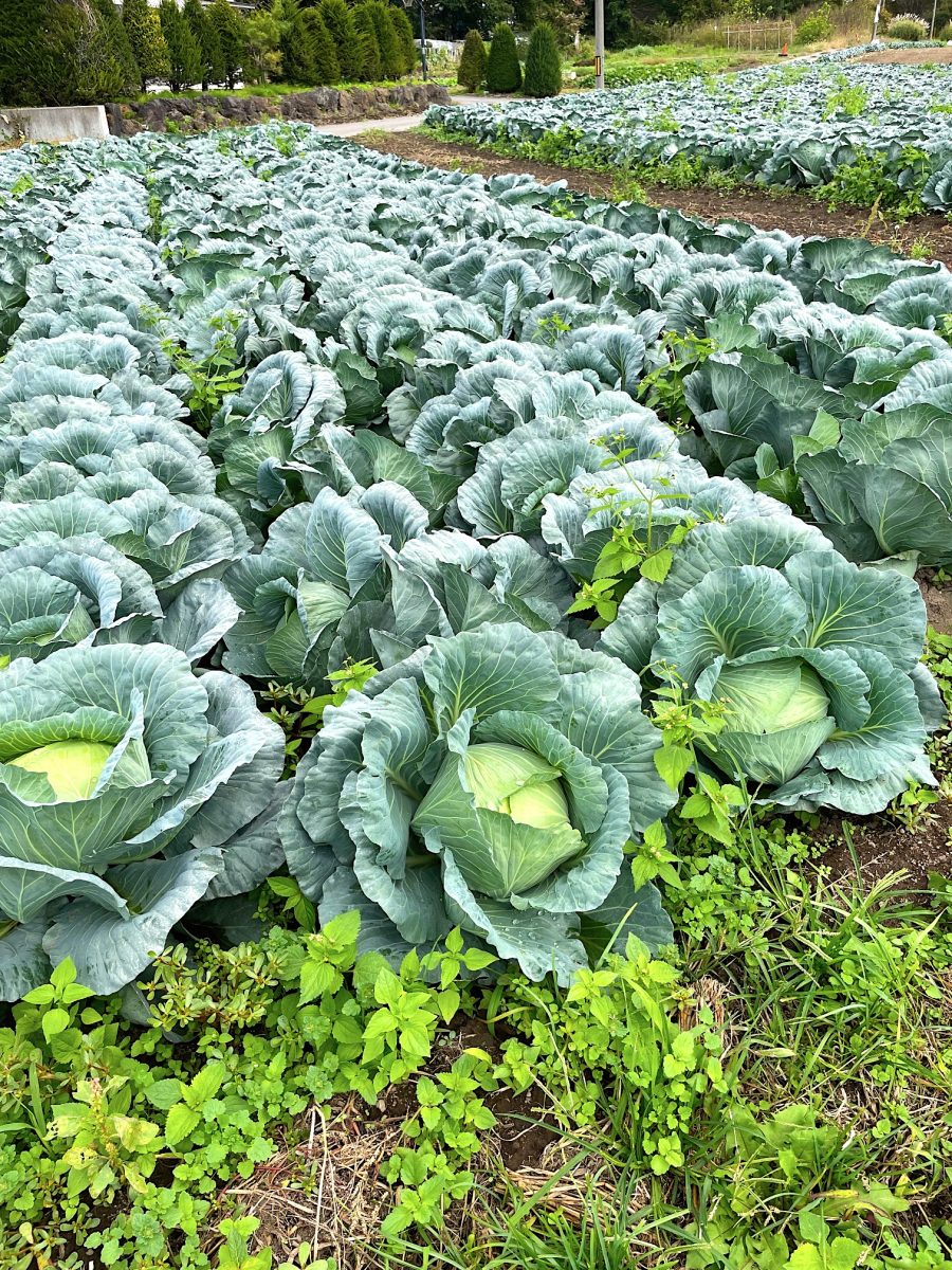 御代田にできたパン屋さんの目の前には巨大なキャベツが並ぶ畑。秋の豊作を知る