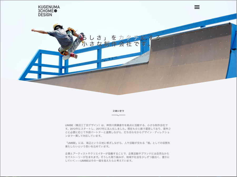 『鵠沼三丁目デザイン』オフィシャルサイトのトップページ(抜粋)