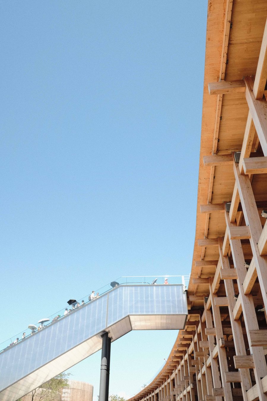 万博は、開園からほぼ人の流れが止まらない。人が写らないようにパビリオンのファサードを撮るのは至難の業だ。そこで、視線を少し上に向けてみた。
