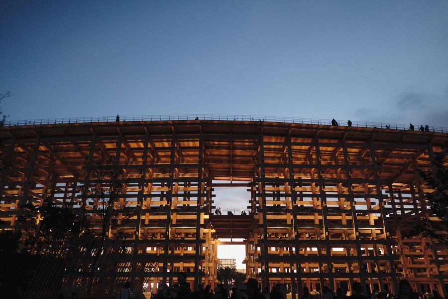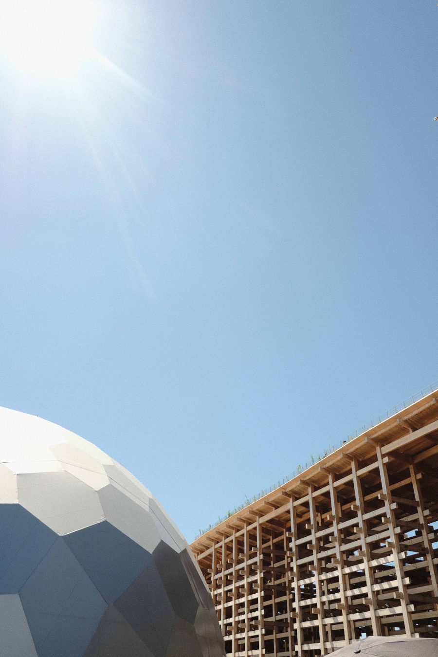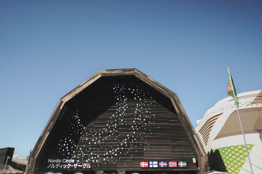 万博は、開園からほぼ人の流れが止まらない。人が写らないようにパビリオンのファサードを撮るのは至難の業だ。そこで、視線を少し上に向けてみた。