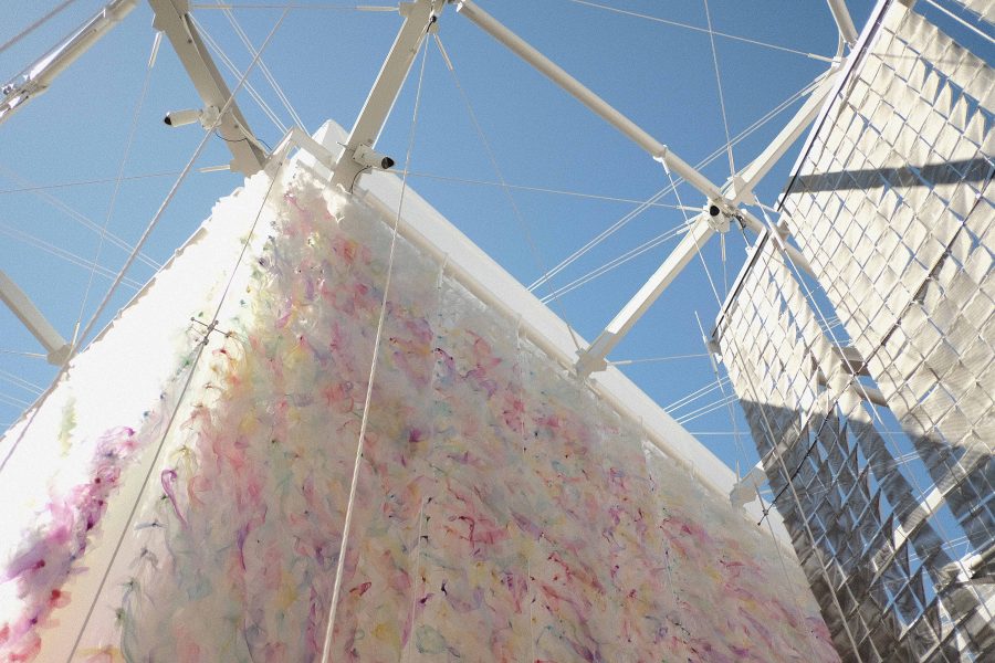 紐だけで構成された屋外空間は、仮設建築だからこそ実現できる、許される軽さと実験性。