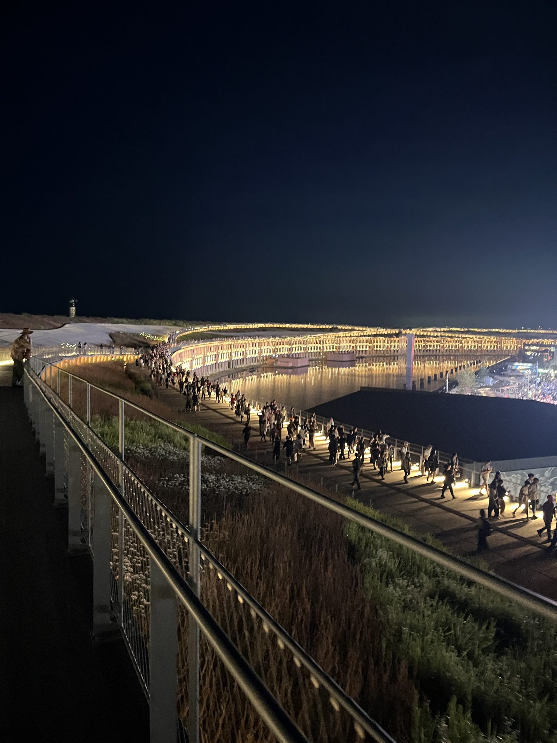 会場を見渡せる大屋根リングの上でドローンショーを体験