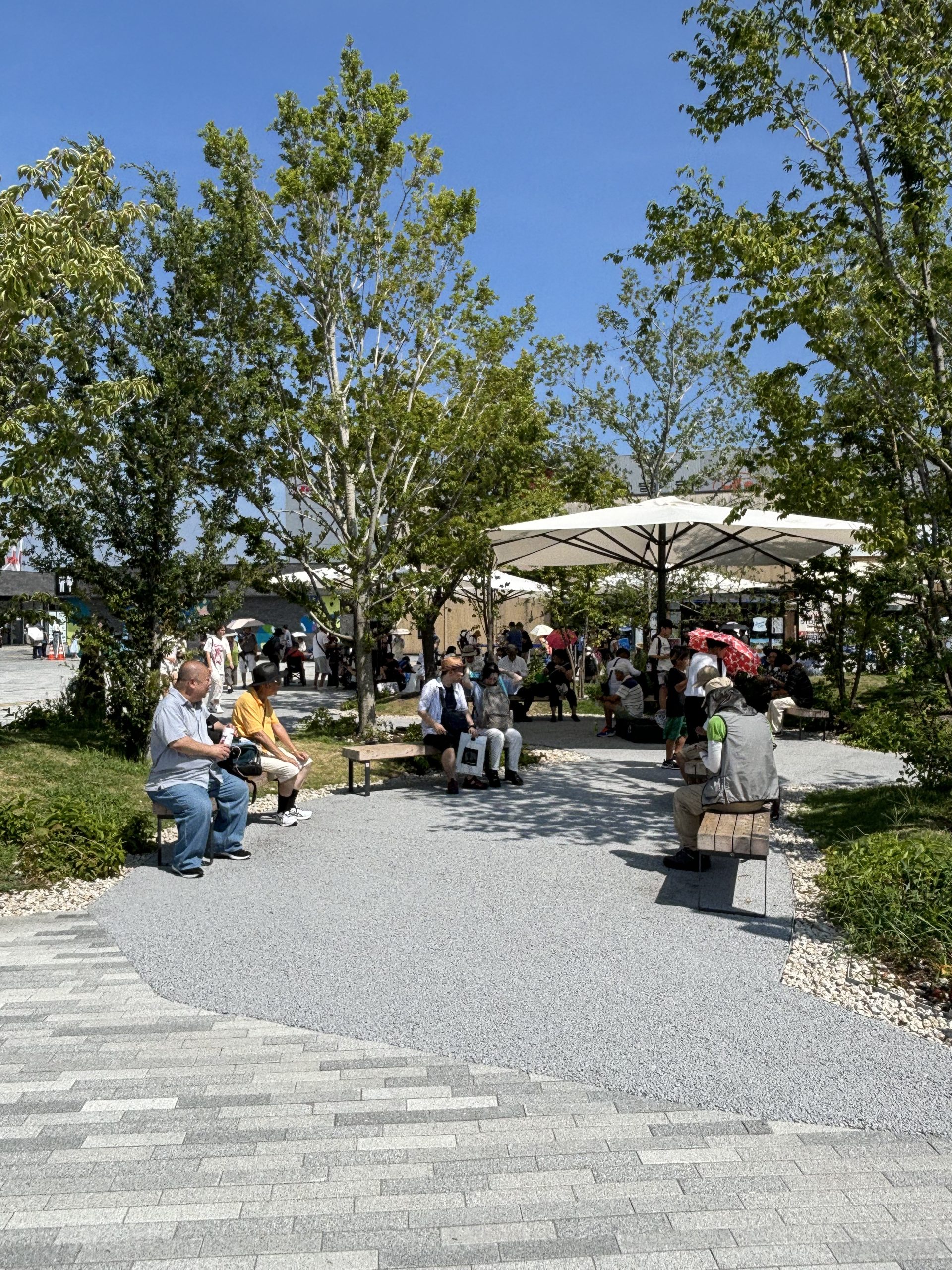 座る場所と給水スポットが各パビリオンの合間にたくさんあった。