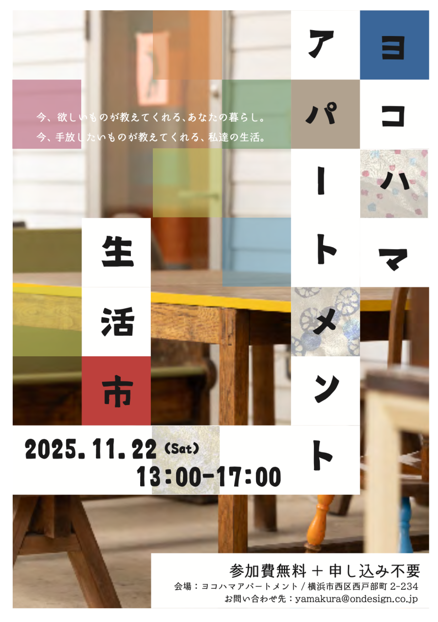 11/22(土)にヨコハマアパートメントにて『生活市』を開催します!