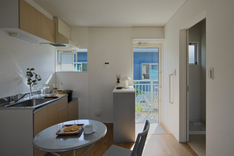 ミチニワに面して住戸の出窓やガラスの玄関扉を設けることで、室内にいながら外の気配を感じとれるようにし、見守りの視点と開かれた生活が両立する住環境を実現している。住戸内はバリアフリー仕様とし、可変性のある間取りによって介護や看取りなどライフステージの変化にも柔軟に対応できるようにした。